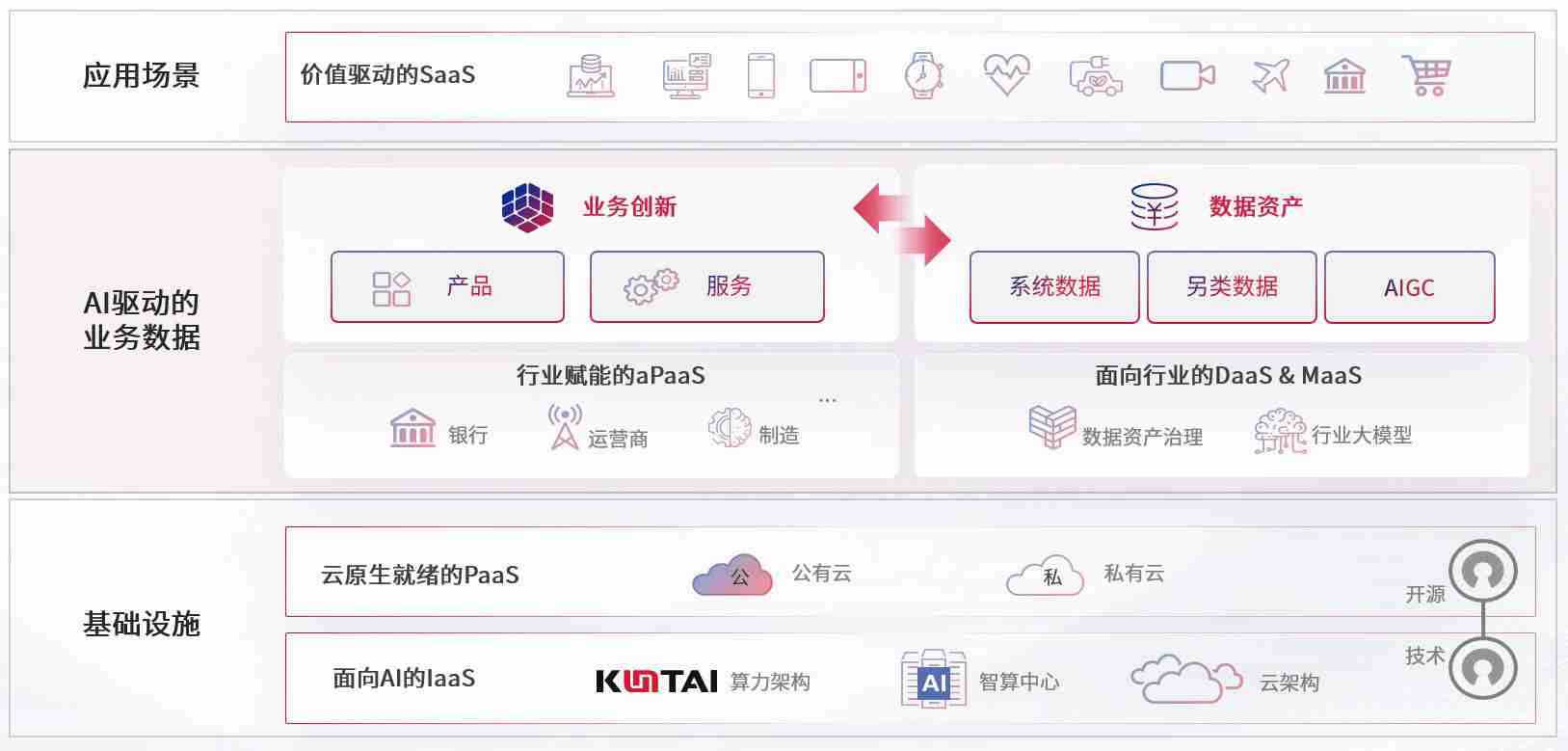 数字时代,,,,围绕企业数字化转型的关键要素,,金年汇数码开创性的提出数云融合战略和技术体系框架,,着力在云原生、、、数字原生、、AI原生和信创产业上架构产品和服务能力,,为处在不同数字化转型阶段的快消零售、、汽车、、、金融、、、、医疗、、、、政企、、、教育、、、运营商等行业客户提供泛在的敏捷IT能力和融合的数据驱动能力,,,,构建跨界融合创新的数字业务场景和新业务模式,,,助力企业级客户建立面向未来的核心能力和竞争优势,,,全面推动社会的数字化、、智能化转型升级。。
