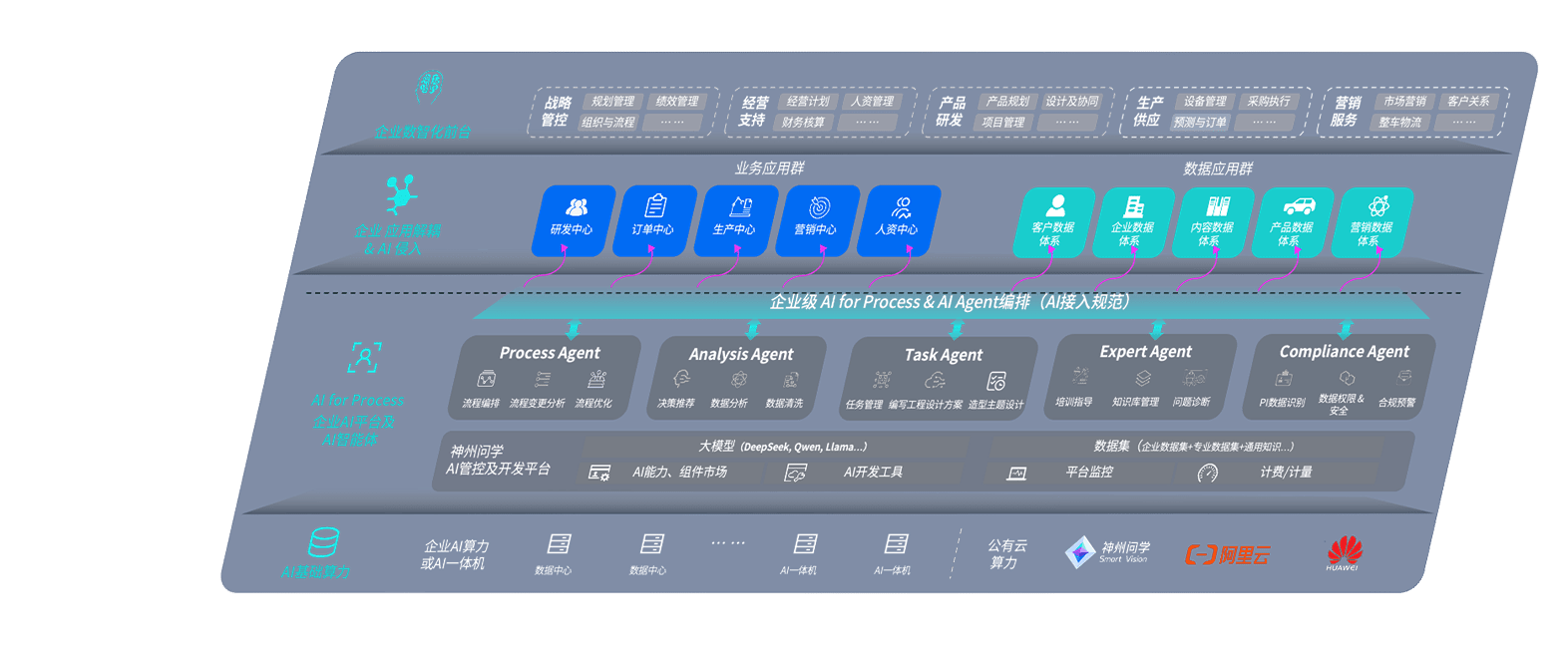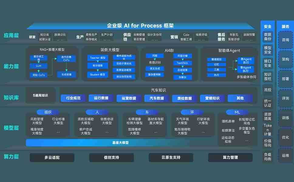 金年汇问学智车解决方案是一套基于AI技术的汽车行业智能化系统,,,,覆盖从底层算力到顶层AI应用的全栈方案。。方案由算力层、、、、模型层和应用层组成:算力层,,,方案支持多种一体机配置,,具备云端灵活部署、、、、多云适配以及动态优化计算资源的能力;模型层,,,金年汇问学平台版提供了企业级AI应用一站式构建与管理平台,,,,支持基于后训练强化技术的汽车企业专属模型的训练、、、评测和运营;应用层,,金年汇问学DeepSeek版提供包括超级员工、、智能招采、、、智能营销、、、智能客服、、AI for BI等一系列解决方案,,,,可助力汽车行业实现数字化转型,,,,让管理更智能、、、、响应更敏捷。。。。